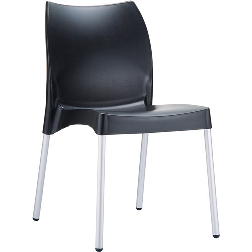 Vita Hospitality Dining Chair Indoor Outdoor Use Stackable Aluminium Legs Black Shell