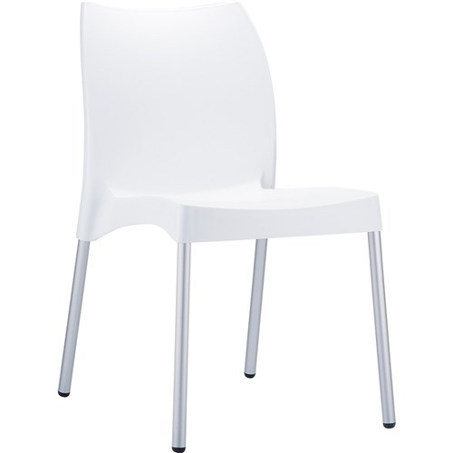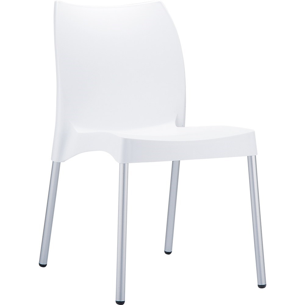 Vita Hospitality Dining Chair Indoor Outdoor Use Stackable Aluminium Legs White Shell