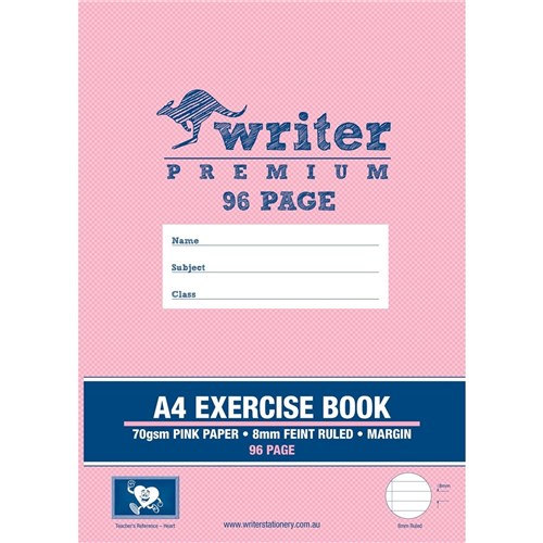 Writer Premium Exercise Book A4 8mm 70gsm With Margin 96 Page Pink Paper-Heart